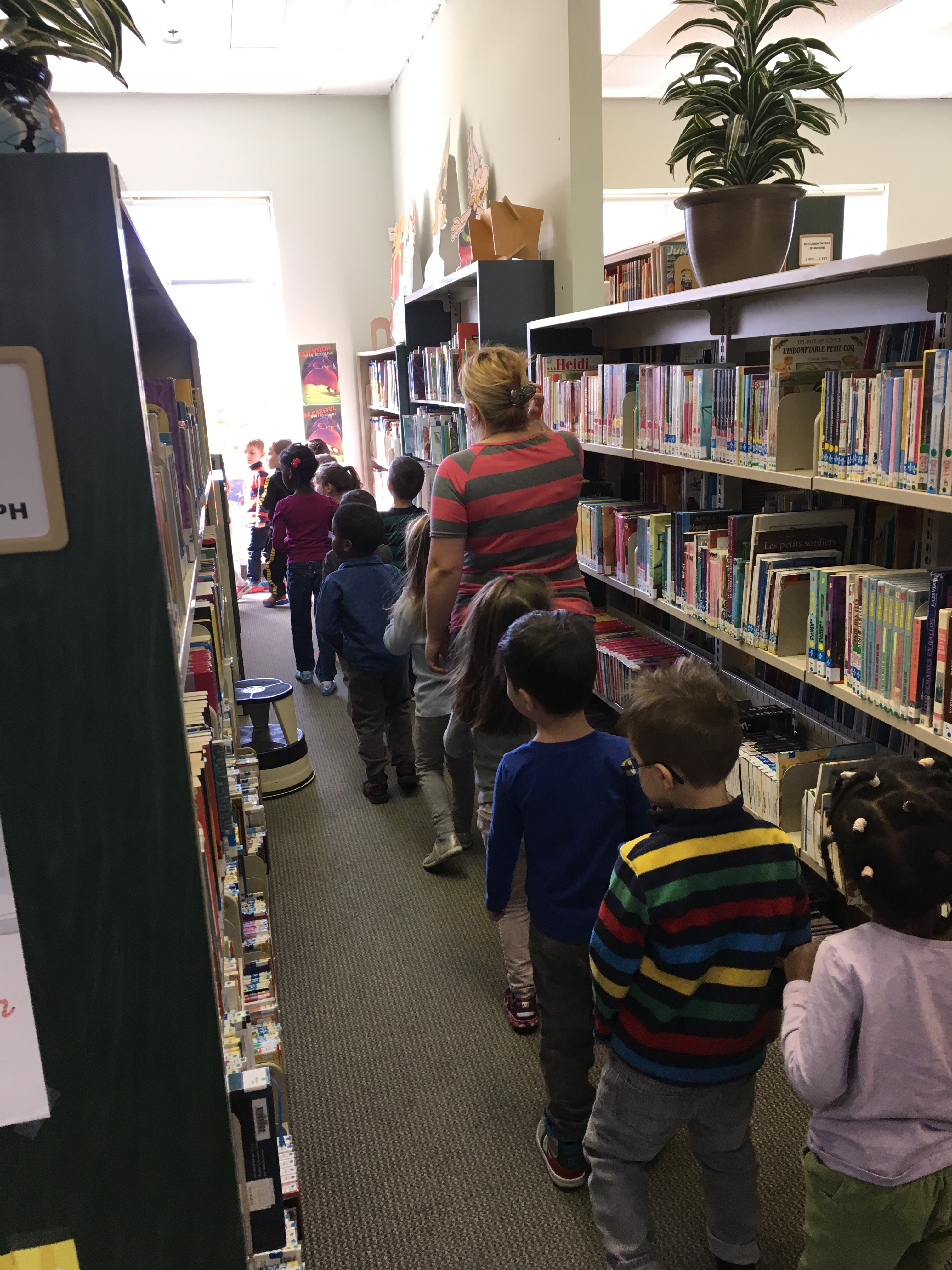 Certains de nos groupes vont une fois par mois à la bilbliothèque soit pour regarder de nouveaux livres parlant des thèmes à venir ou pour l'heure du conte.